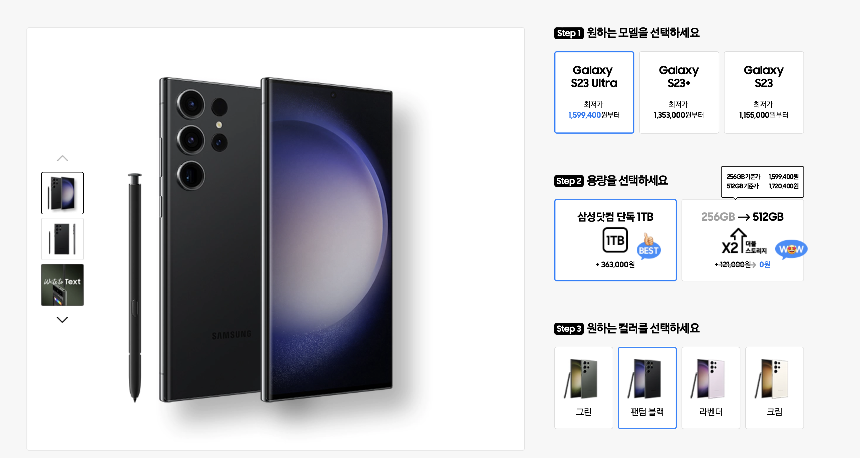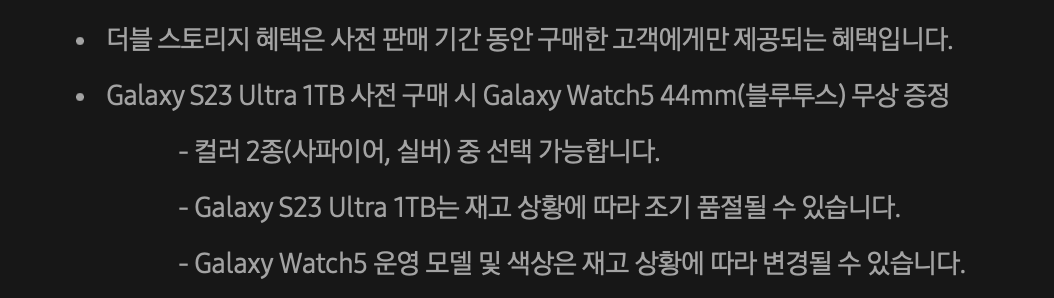 반면 S23 울트라 1TB를 구매하는 경우에는