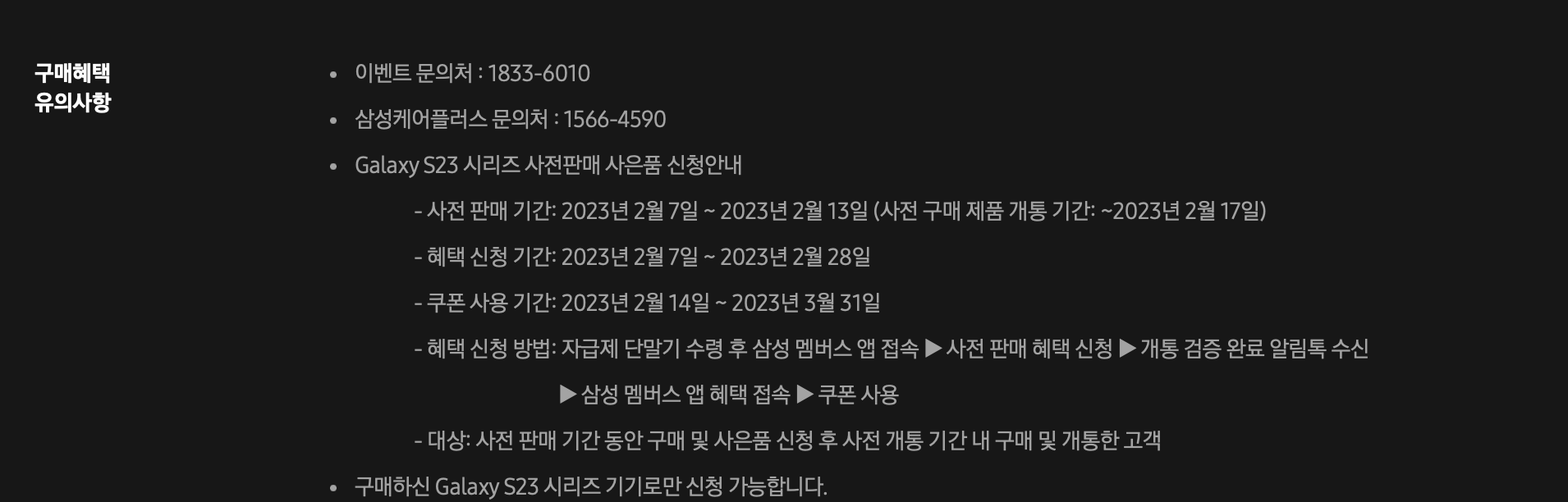 갤럭시 S23 사전예약 프로모션 (이통사고객)