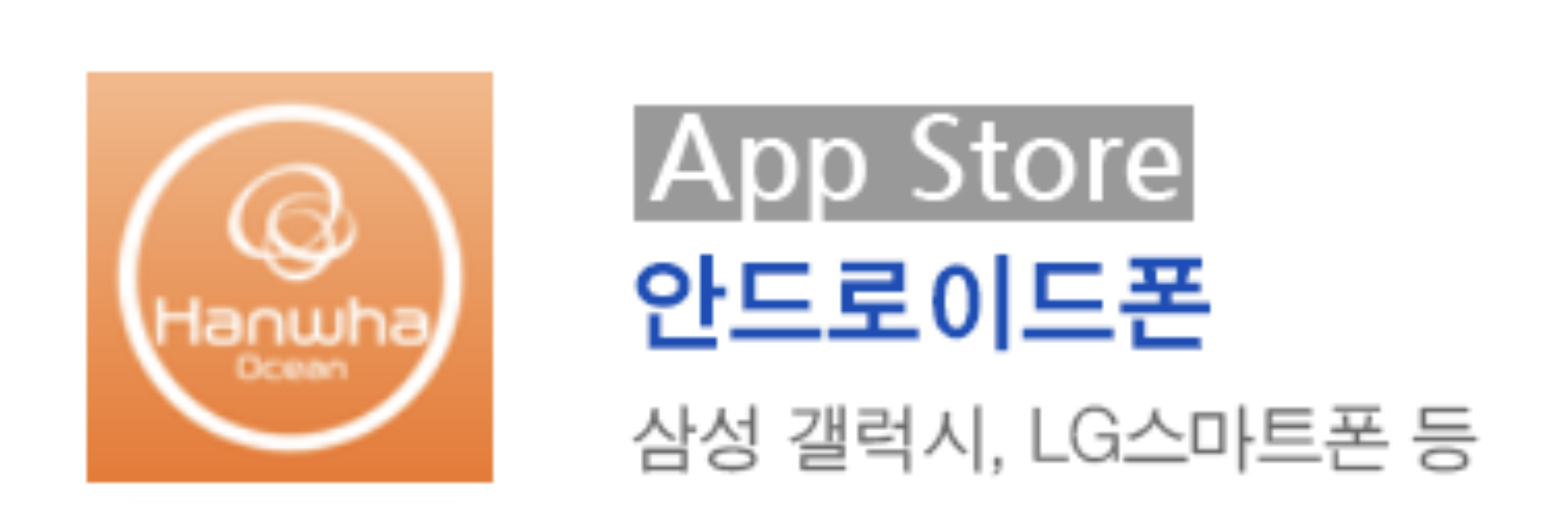 한화오션 앱스토어에서는 안드로이드버전, iOS버전 어플 설치 링크가 제공됩니다. 사용하시는 기종에 맞는 파일을 다운 후 설치하시기 바랍니다.