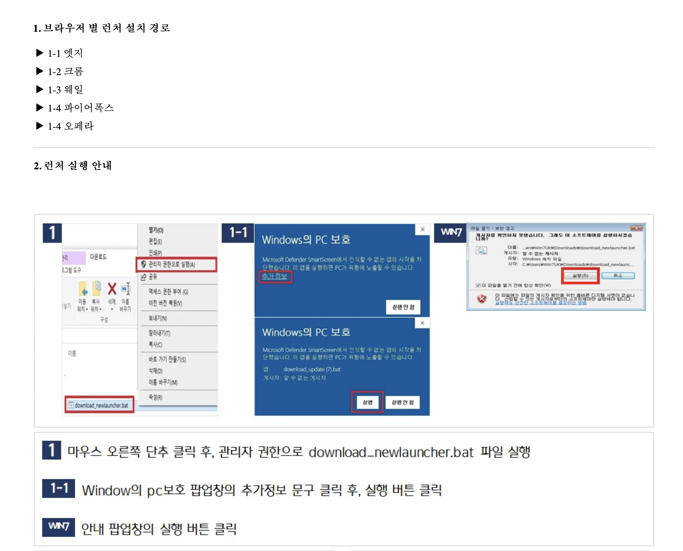 1. 브라우저 별 런처 설치 경로 3. 설치 에러 발생 시 조치 방안