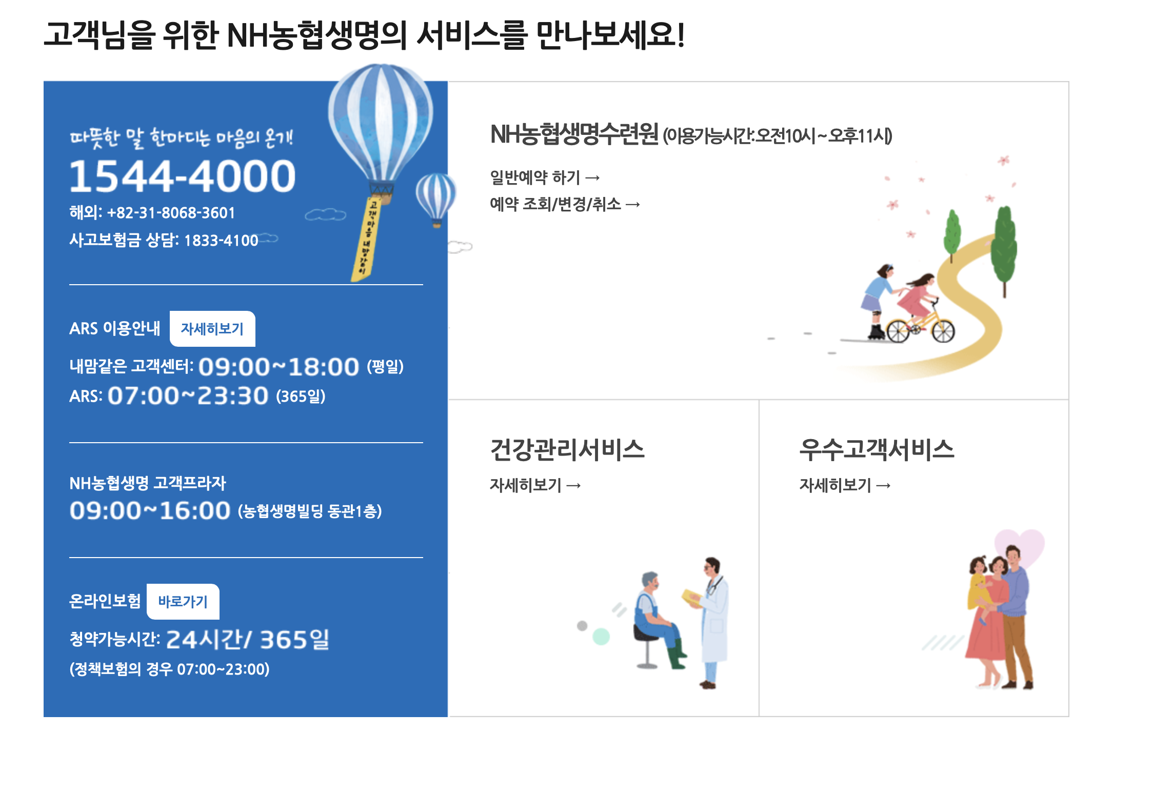 고객님을 위한 농협생명의 서비스를 만나보세요.